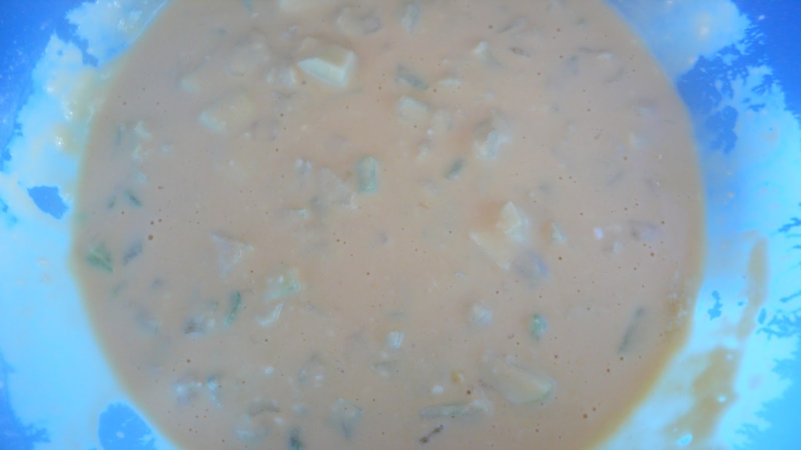Izrezati tikvu na kockice. Umutiti sir, jaja, mlijeko, ulje, so dodati obje vrste brašna i prašak za pecivo.